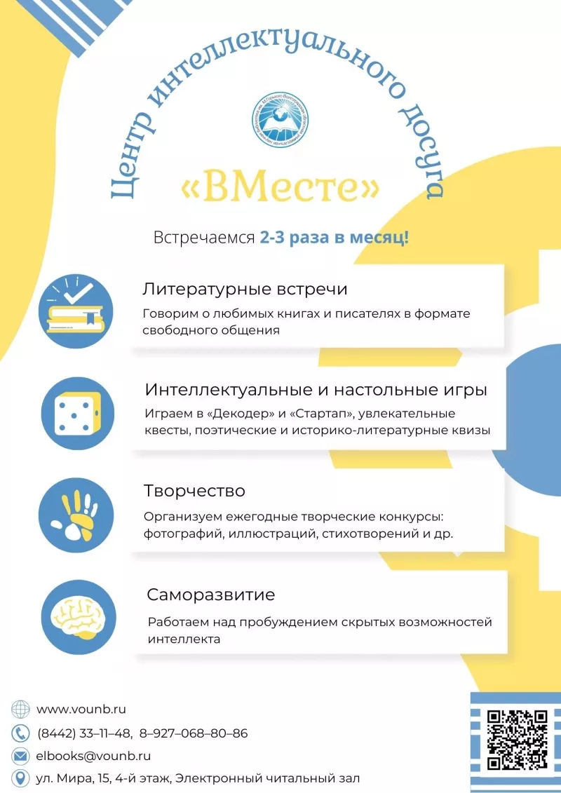 Мероприятия: краеведческие выставки, культурно-досуговые мероприятия гражданско-патриотической направленности, семинары и консультации по информационным технологиям, мероприятия по безопасности детей в сети Интернет, интеллектуальные игры, квесты, квизы, викторины, тематические встречи, интерактивные зоны.