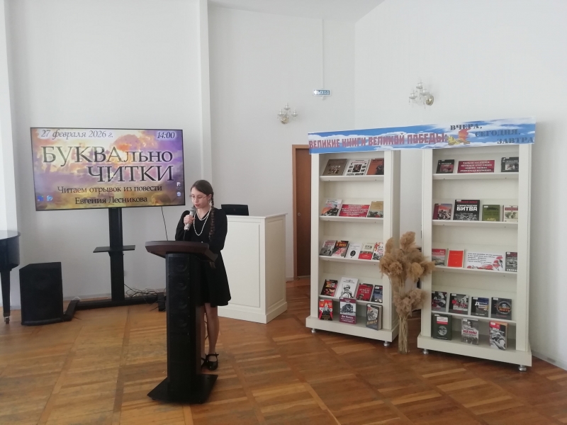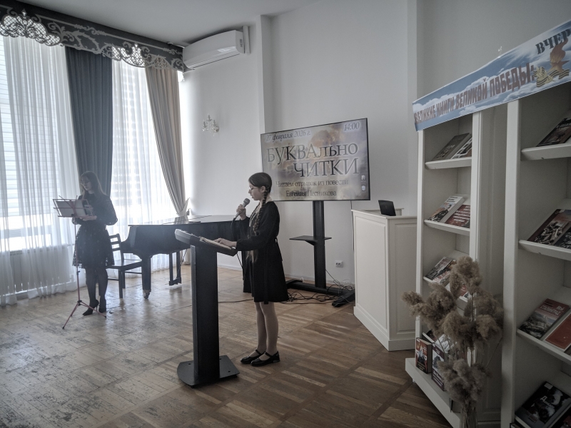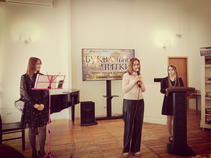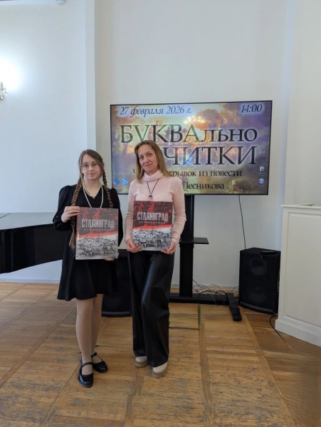 Для зрителей отрывок из повести прочитали: Мария Павлова – сотрудник Волгоградской ОУНБ им. М. Горького, чтец проекта ЛитРес, выпускница Федеральной школы радио, участник сообщества «Пiит», организатор проекта «Буквально читки» и София Компанченко – ученица МОУ лицея № 3 г. Волгограда и театральной студии «Волшебная сцена», победитель международного фестиваля-конкурса детского и юношеского творчества «Имена России», участник гала-шоу победителей в Государственном Кремлёвском Дворце, лауреат Муниципального фестиваля театрального творчества «Волшебная рампа – 2026».