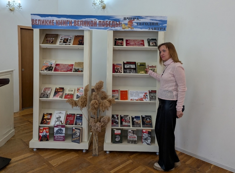 Украшением мероприятия стала выставка «Великие книги Великой Победы», подготовленная сотрудниками Сектора хранения фонда отдела по управлению библиотечными процессами, которые на протяжении нескольких десятилетий бережно хранят печатные издания для будущих поколений.