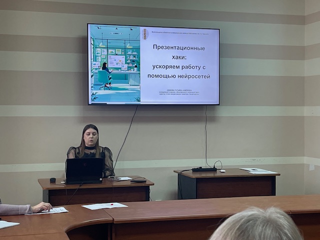 Мастер-класс «Презентационные хаки: ускоряем работу с помощью нейросетей» провела Татьяна Андреевна Акимова, заведующая Отделом «Электронный читальный зал» Волгоградской ОУНБ им. М. Горького.