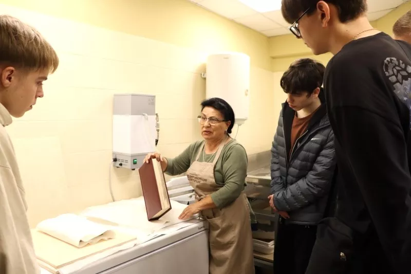 Не обошлось и без практических занятий. Участники экскурсии на время стали настоящими хранителями книжных сокровищ. Они узнали, как правильно ухаживать за редкими и ценными изданиями – например, почему так важно следить за температурой и влажностью, чтобы книги служили ещё долгие годы.