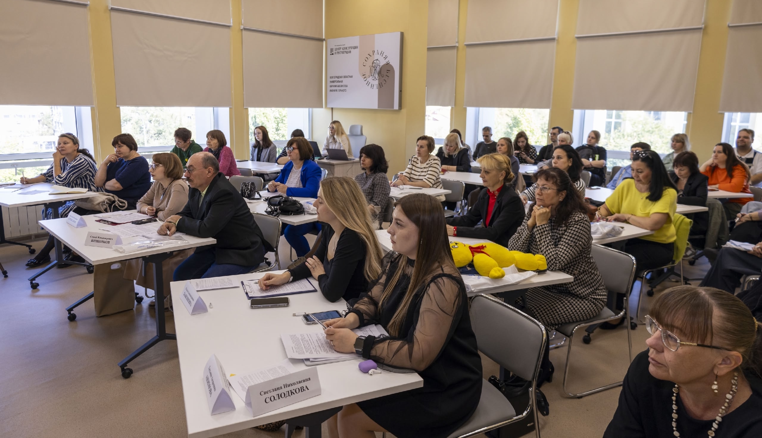 Опыт библиотек Волгоградской области был представлен в выступлениях Н. В. Севостьяновой, директора Библиотечно-информационного центра г. Фролово, рассказавшей о библиотеке как о центре творчества и локальной идентичности в рамках проекта «Гений места», и А. Н. Стрижаковой, заведующего Отделом информационно-библиографического обслуживания читателей Волгоградской областной специальной библиотеки для слепых, осветившей вопросы стратегического партнерства с социальными организациями.