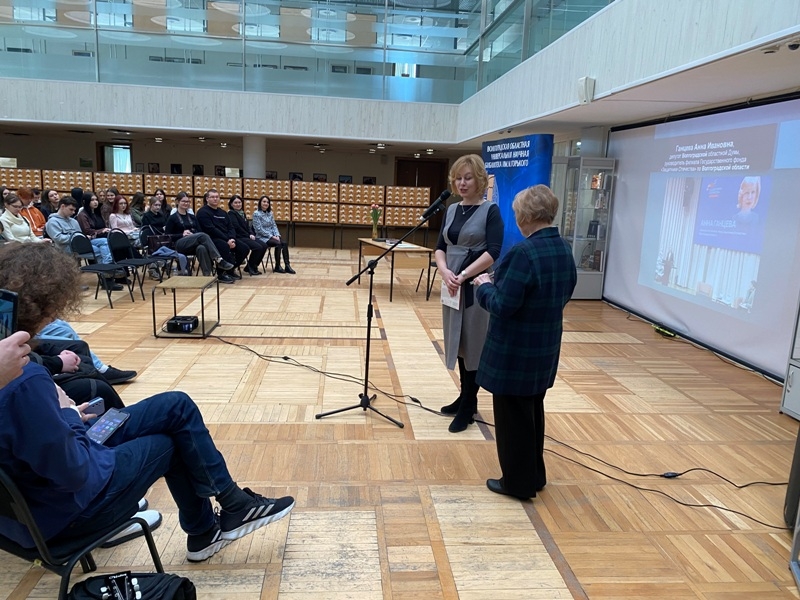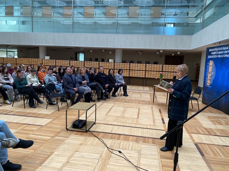 Зал каталогов с трудом вместил всех гостей Библиотеки. В творческой встрече приняли участие: депутат Волгоградской областной Думы, руководитель филиала Государственного фонда поддержки участников Специальной военной операции «Защитники Отечества» по Волгоградской области Анна Ивановна Ганцева, собственный корреспондент «Литературной газеты», член Союза писателей России Никита Самохин, редакция журнала «Отчий край», многочисленные читатели – молодые и зрелые.