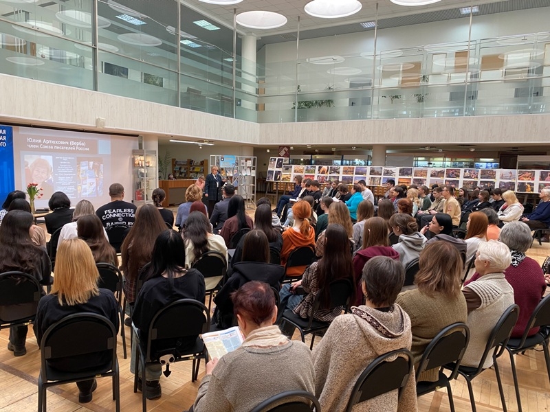 Юлия Васильевна Артюхович – Верба – более десяти лет является надежным партнером и другом Библиотеки. Юлия Васильевна – частый гость в нашей Библиотеке. Ее творческие встречи, мастер-классы и презентации новых книг вызывают интерес у читателей и зрителей. Юлия Васильевна проводит литературно-музыкальный вечера, в том числе по «Пушкинской карте», которые проходят с неизменным успехом и при полных залах.