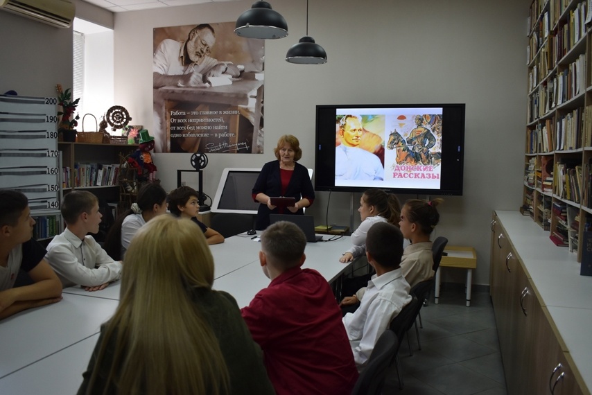 литературное мероприятие «Герои шолоховских рассказов», на котором ребятам рассказали о годах жизни писателя, познакомили с его заслугами, наградами и писательской деятельностью, начавшейся в 1925 году, когда вышел первый сборник «Донские рассказы». Для чтения вслух был выбран автобиографический рассказ писателя «Нахалёнок». При обсуждении рассказа и его главного героя – мальчугана Миньки – Мишки Коршунова был проведён библио-кросс «Книжный чувствик».