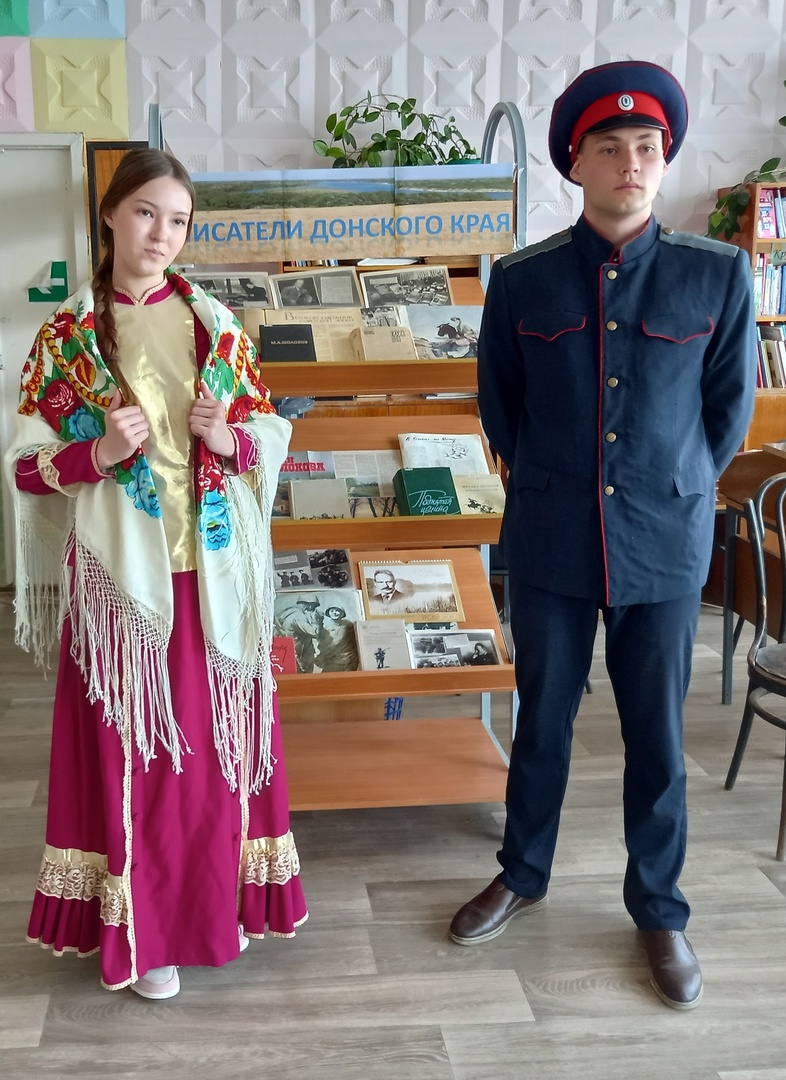 Так, сотрудники Серафимовичской районной библиотеки провели для старшеклассников Средней общеобразовательной школы № 1 Литературный час «Его книги читает весь мир!». В рамках мероприятия прошла книжная выставка и викторина о жизни и творчестве писателя. Ребята также с удовольствием приняли участие в фотосессии в казачьих костюмах.