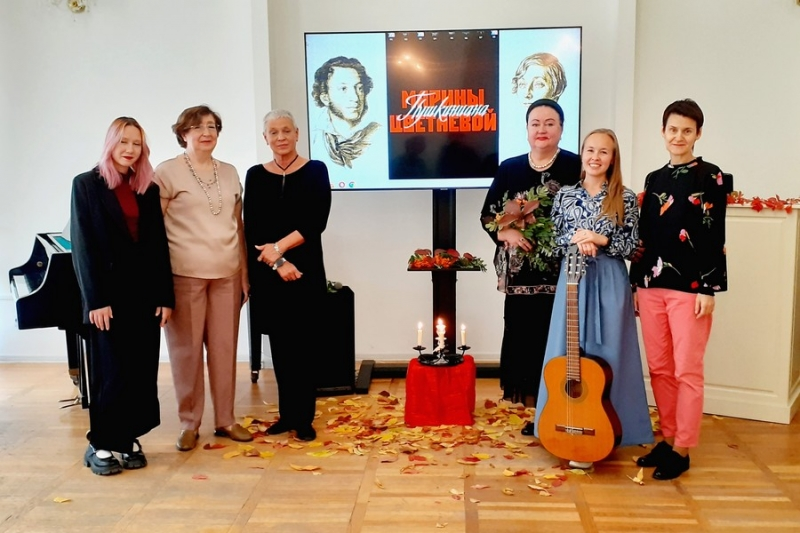 Знаменитые музыкальные иллюстрации к «Метели» в переложении для фортепиано в 4 руки Константина Титаренко и музыкальные зарисовки Валерия Гаврилина создали необходимый эмоциональный фон, а литературный фон – книжная выставка «Я с Пушкиным мысленно с 16 лет…». Марина Ивановна написала это в одном из своих писем…