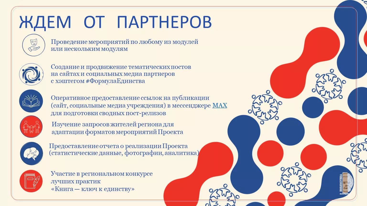 Участники проекта «Формула единства» могут представить результаты своих мероприятий на конкурсе лучших практик «Книга — ключ к единству» и побороться за дипломы I, II, III степени и призы.